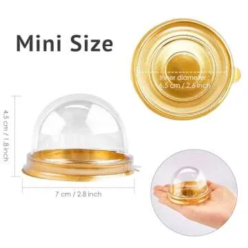 Zezzxu 50 Pack Mini Bundt Cake Containers, Clear Plastic Small Cupcake Boxes with Dome Lids for Individual Chocolate Covered Cookies, Strawberry, Mooncake (Gold)