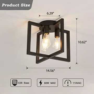 ZGLAOJT 3-Lights Ceiling Light Fixture,Industrial Semi Flush Mount Chandelier,Ceiling Lighting for Kitchen Living Room Bedroom Farmhouse Hallway Foyer