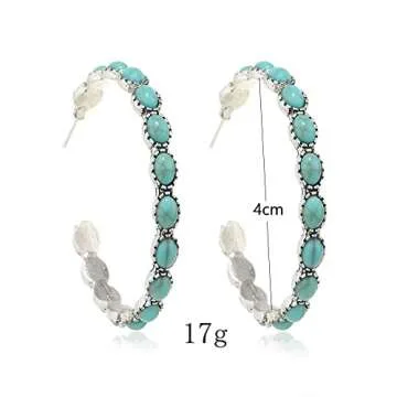 Show moreIntroducing the exquisite Zhang Shine Turquoise Bohemian Dangle Earrings, an enchanting blend of vintage elegance and playful charm! Crafted with meticulous attention to detail, these earrings are designed to embody the essence of harmony and happiness, reflecting the beautiful aesthetic of turquoise. Each piece showcases delicately engraved accents set around faux turquoise beads, offering a romantic twist that enhances any outfit. Lightweight yet striking, they weigh only 17 grams and are approximately 4 cm in diameter, making them ideal for all-day wear without compromising on style.