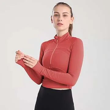 Show moreThis Flattering Slim-fit Yoga Jacket combines style and functionality in a chic crop design, perfect for those who appreciate both aesthetics and performance. Made from super soft and stretchy fabric, this jacket feels just like a second skin, allowing for maximum comfort during yoga poses and workouts. With long sleeves featuring convenient thumb holes, it aids in keeping the sleeves in place while offering warmth during cooler weather. The jacket is crafted by a reputable brand known for its dedication to quality athletic wear, ensuring durability and style. Split stitch double needle sewing enhances the jacket's versatility, making it suitable not only for workouts but also for everyday casual wear.