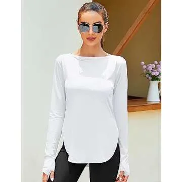 Compared to other brands, the ZHENWEI Women's Long Sleeve Workout Tops stand out due to their superior UPF 50+ sun protection, ensuring ample defense against UV rays during prolonged sun exposure. With thoughtful features such as side slits and thumb holes, this shirt offers convenience and style, while many competitors provide basic designs without additional functionality. The loose fit caters to a range of body shapes, making it a more inclusive choice for women seeking both performance and comfort.