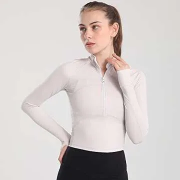 ZHENWEI Women's Running Jacket Slim Fit Lightweight Long Sleeve 1/2 Zip Workout Yoga Jacket Ivory grey S