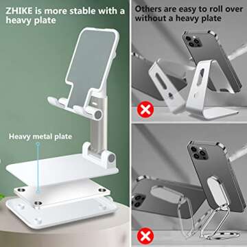 When compared to other phone holders in the market, the ZHIKE Phone Holder stands out due to its combination of stability, design, and user-friendly features. While many holders may offer adjustable heights, ZHIKE’s capability to securely hold up to 8 pounds and remain foldable sets it apart. Additionally, the protective silicone pad ensures that your device stays scratch-free—a feature not commonly found in its competitors.