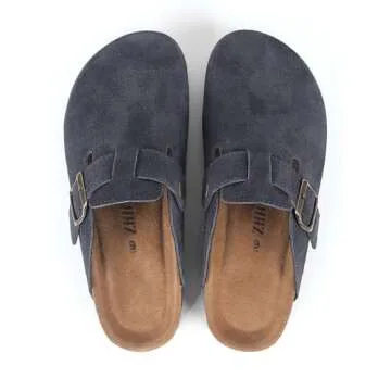 ZHILETAO Suede Clogs for Women | Adjustable Buckle Slip-On Cork Footbed