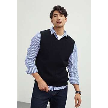 zhilifs Mens V-Neck Knitted Sweater Sleeveless Pullover Knitwear Vest Solid Plain Loose Fit All Match Sweater Tops_Black_Large