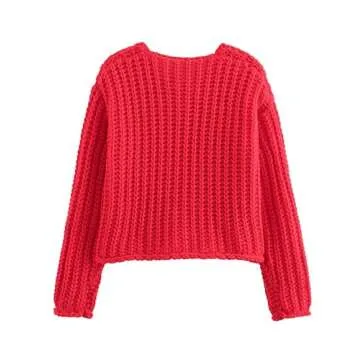 Zhiyouni Women's Cropped Cardigan Sweater Long Sleeves Button Down Chunky Knitted Coat(Red-S)