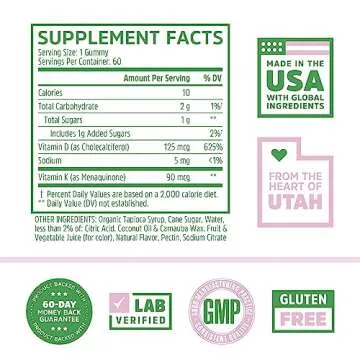 Zhou Nutrition Vitamin D3 K2 Gummies, Bone and Heart Health Formula 5000 IU Vitamin D3 & 90 mcg Vitamin K2, Max Strength 2 in 1 Immune Support and Calcium Absorption, Gluten Free, Strawberry, 60 Count