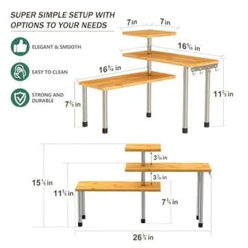 ZHWS Kitchen Countertop Organizer, Kitchen Corner Shelf, Adjustable 3 Tier Bathroom Counter Organizer with 4 Hooks, Coffee Bar Organizer, Counter Corner Shelf for Spice Rack, Over Sink, Dresser Table
