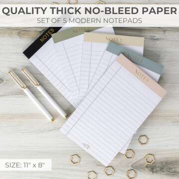 Show moreIntroducing the ZICOTO Aesthetic Note Pads Set of 5 – your ultimate companion for organization and creativity! Whether you're juggling home chaos, meeting work deadlines, or tackling school projects, this meticulously designed set transforms your daily tasks into an organized breeze. Each 5x8 inch lined legal pad features 40 tear-off sheets, giving you ample space to capture brilliant ideas, manage your to-do lists, and plan epic grocery hauls. With its combination of style and functionality, the ZICOTOs’ note pads are here to help you stay on top of your game in any environment.