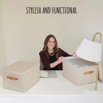 Show more Discover the perfect blend of style and functionality with the ZICOTO Decorative File Organizer Box Set of 2. This versatile file cabinet is designed to help you manage your paperwork, letters, folders, and hanging files with elegance and ease. Whether you’re navigating a bustling home office or simply looking for a cute storage solution, this set is your go-to option. Crafted from high-quality linen fabric, the organizer boxes feature a durable construction with a reinforced bottom, ensuring that your documents remain stable and secure. Their thoughtful design includes a practical lid that keeps dust away, ensuring your files are always protected and ready for use.