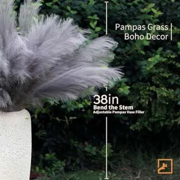 ZIFTY 7-Pcs 38"/3.1FT Faux Pampas Grass Large Tall Fluffy Artificial Fake Flower Boho Decor Bulrush Reed Grass for Vase Filler Farmhouse Home Wedding Decor (Grey)