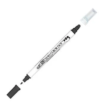 ZIG Clean Color Dot Marker | Dual Tip Pure Black Marker With Brush Tip | Water-Based Pigment - Ideal For Marking In Planners Or Journals