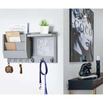 Ziivita Key Holder for Wall - Mail Holder Organizer Wall Mount with Shelf - Hanging Key Rack Hanger with Hooks Decorative for Home Letter Dog Leash Entryway Living Room Decor