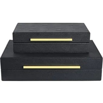 These boxes are meticulously crafted to enhance your home's aesthetic while offering practical storage solutions. The interior is lined with sumptuous velvet, ensuring your treasured items are kept secure and protected from dust and scratches. The smooth-gliding gold-tone metal hinges promise a smooth operation, making it delightful to access your belongings while organizing your space effortlessly. The high-quality construction means these decorative boxes not only serve as stylish decor but are durable enough for everyday use, catering to your storage needs for years to come.