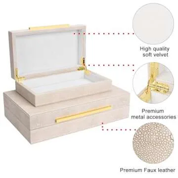 ZIKOUL Ivory Shagreen box Set of 2 Faux Leather Decorative Boxes,Large Nesting Storage Decorative Boxes with Lids for Modern Home Decor Stacking Jewelry Box Organizer