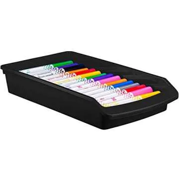 Zilpoo 10 Pack – Plastic Shelf Bins, Closet Shelves Organization Trays, Office Desk Supplies Drawer Organizer, Dorm Room Storage Container, Garage Hardware Nesting Baskets, Black