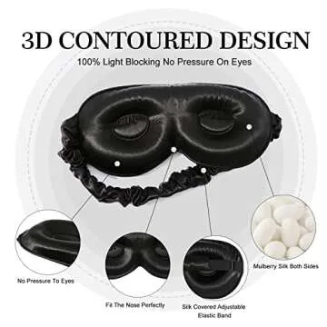 ZIMASILK Adjustable 22 Momme 100% Pure Mulberry Silk Sleep Mask, 3D Contoured Cup Eye Mask for Sleeping, Super Soft Breathable Blindfold, Perfect Blocks Light for Sleeping (Black)