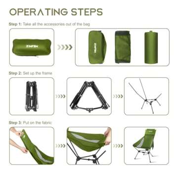 ZIMFEM Camping Chairs, Portable Camping Chair with Headrest and Storage Bag, Lightweight Foldable Chair for Outside Camping, Hiking, Travel, Beach and Sports(Green), CC168-Green