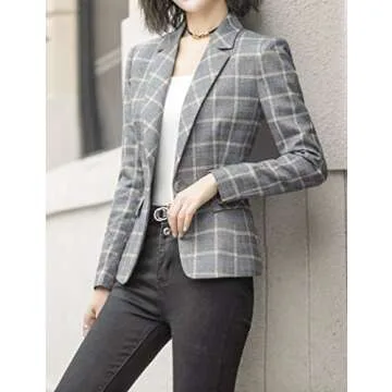 ZingineW Women's Blazer Long Sleeve Jacket One Button Office Cardigan Casual Plaid Blazers Gray Plaid 2XL