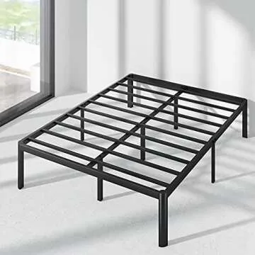 Show more Introducing the ultimate solution for anyone seeking a practical yet stylish bed frame - the ZINUS Van 16 Inch Metal Platform Bed. Crafted with a high-quality metal structure, this frame not only offers durability but also delivers an impressive foot of under-bed storage space, making it ideal for small spaces or anyone looking to declutter their bedroom. Say goodbye to bulky box springs! This frame is designed with steel slats that provide excellent support for your latex, memory foam, or spring mattress. With a maximum weight capacity of 350 lbs for the twin size and up to 700 lbs for larger sizes, you can rest assured of its sturdiness.