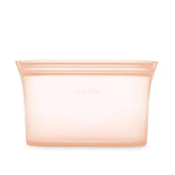 Zip Top Reusable Food Storage Bags | Large Dish [Peach] | Silicone Meal Prep Container | Microwave, Dishwasher and Freezer Safe | Made in the USA