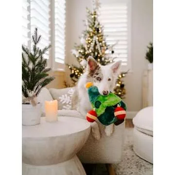 ZippyPaws Burrow Christmas Dog Toy - Plush Squeaky Holiday Dog Gifts for Small & Medium Puppy Dogs, Interactive Hide & Seek Stocking Stuffers for Pets - Christmas Tree & Ornaments