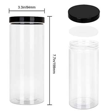 ZIQI 8Pack 32Oz Clear Plastic Jars with Black Lids, Large Clear Empty Plastic Jars Round Food Grade Containers, BPA Free PET Container Pantry, Home and Kitchen Storage