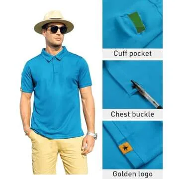 ZITY Mens Polo Shirt Short Sleeve Sports Tactical T-Shirt Athletic Golf Polos Daily Casual Stylish Collared Shirts for Men Bluegreen Medium