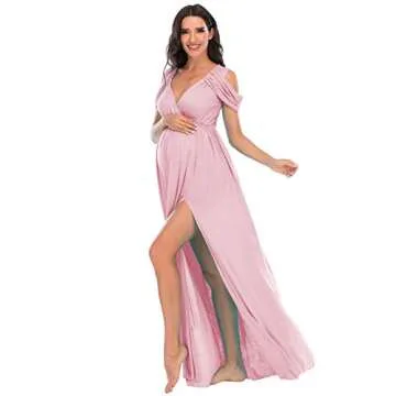 ZIUMUDY Maternity Off Shoulder V Neck Wraped Photography Photoshoot Dress Maxi Baby Shower Dress (X-Large, Pink)