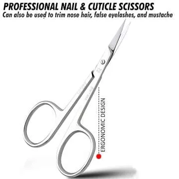 ZIZZLON Cuticle Scissors Extra Fine Curved Stainless Steel Eyebrow Scissors, Professional Grooming Scissors for Beard, Nose Hair, Eyelash, Mustache, Dry Skin - Manicure Scissors