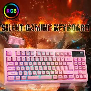ZJFKSDYX L87 Wireless Gaming Keyboard, Rechargeable 3000mAh 2.4G LED Backlit Wireless Keyboard, Ergonomic Keyboard with Mechanical Feeling Keys for PC PS4 Xbox One Mac, Teclado Gamer (Pink)