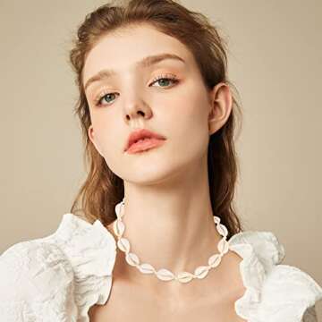 Show moreIntroducing the Zkptops Natural Shell Choker Necklace – a stunning blend of elegance and versatility, perfect for those who adore bohemian style. Handcrafted with high-quality natural cowrie shells strung on a durable 2.5mm Korean wax cord, this choker brings the essence of summer to your wardrobe. At a comfortable length of 13 inches with an adjustable design, it seamlessly fits various neck sizes, making it a go-to accessory for any occasion. Whether you're hitting the beach, enjoying a casual day out, or dressing up for an evening event, this necklace is an exquisite way to express your unique style. Each shell is perfectly sized, ensuring a chic look that’s truly representative of modern beach fashion.