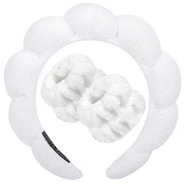 Show moreIntroducing the Zkptops Spa Headband and Wristband Set, your new essential companion for a flawless skincare routine. Crafted with care and attention to detail, this delightful set combines style with functionality, ensuring that every skincare step is a pleasure rather than a chore. Made from high-quality coral fleece and featuring a soft sponge lining, this set not only feels luxurious against your skin but also excels in water absorption—keeping you mess-free while washing your face or applying your favorite skincare products. Keep your hair neatly tucked away with its adorable bubble cloud design that effortlessly complements your pampering sessions.