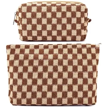 ZLFSRQ 2Pcs Checkered Makeup Bag Set - Stylish & Versatile Cosmetic Bags