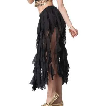Show moreStep into a world of vibrant movement with the exquisite belly dancer skirt designed specifically to make you feel beautiful and confident. This stunning skirt showcases a unique design that includes 16 pieces of curling fabric, allowing for a breathtaking twirl that will capture the essence of every dance. Made with a soft, lightweight chiffon material, this skirt flows gracefully with your movements, making it perfect for any type of dance or event. The skirt's length measures approximately 96cm (35.4 inches), and it comes with an elastic band that accommodates waist sizes from 65-98cm (25”-38”). This one-size-fits-most design caters to a variety of body types, ensuring you feel comfortable and confident on the dance floor.