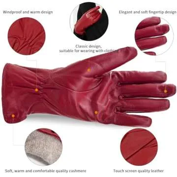 Show moreIntroducing the exquisite ZLUXURQ Soft Genuine Lambskin Leather Gloves, the perfect blend of style, comfort, and functionality for the modern woman braving the winter chill. Crafted from 100% soft lambskin leather, these luxurious gloves feature a plush cashmere lining that cradles your hands in warmth while exuding timeless elegance. Whether you’re strolling through a snow-dusted city or warming up with a delightful cup of cocoa, these gloves elevate your winter outfit with their striking vibrant red color and classic cut. Experience unparalleled softness and a fit that conforms perfectly to your hands, as confirmed by countless satisfied customers who adore their snugness and beauty.