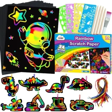This vibrant scratch art set is perfect for birthday parties, where children can engage in group activities. It’s also an excellent choice for Christmas crafts, enabling kids to create personalized gifts for friends and family. With Easter around the corner, these crafts can be a wonderful way to express creativity during festive activities. Use it for indoor activities during a rainy day or as an innovative project in art classes to keep kids entertained and learning.