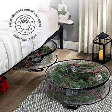 ZOBER Christmas Wreath Storage Container - 30 Inch Plastic Wreath Storage Bag - Dual Zippered Wreath Bag - Durable Stitch Reinforced Handles - Wreath Christmas Storage - 2 Pack
