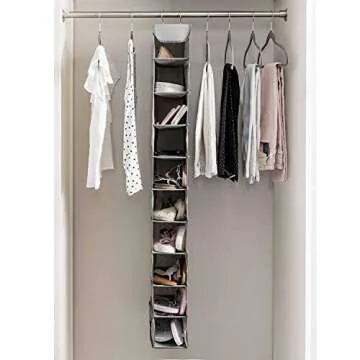 ZOBER Hanging Shoe Organizer for Closet, 10 Shelves - Hanging Shoe Rack W/ Side Pockets - Narrow, Space Saving, Durable