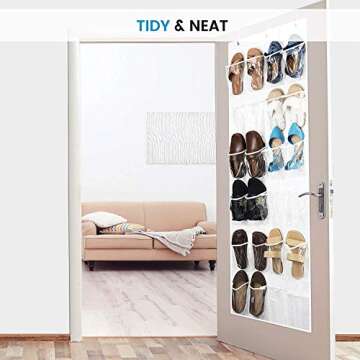Show more Introducing the ZOBER Over the Door Shoe Organizer—transform your living space and bring order to chaos! With an impressive 24 pockets, this organizer is expertly designed to maximize both your wardrobe and floor space, making it the perfect solution for all your shoe organization needs. Whether you're struggling with a cluttered closet or simply looking for a place to sustainably organize shoes, toys, or snacks, the ZOBER hanging organizer is here to help. Crafted with breathable mesh pockets, your items will always have fresh air circulation, preventing unwanted odors while keeping them easily accessible.