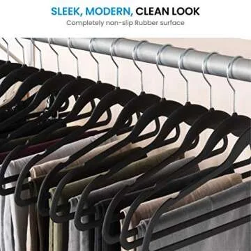 Show more Introducing the ultimate solution to your closet organization problems: a set of 50 Rubber-Coated Hangers designed to elevate the way you store your garments. Crafted from durable plastic and enhanced with a rubber coating, these hangers offer a non-slip surface that completely prevents clothes from slipping off, making them ideal for all types of garments. Unlike traditional hangers, these won't leave residues on wet clothing or stretch out delicate fabrics, ensuring your attire remains in pristine condition.