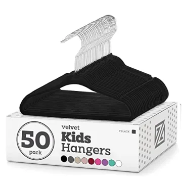 Zober Velvet Kids Hangers for Closet - Pack of 50 Non Slip Childrens Hangers for Shirts, Pants & Dresses w/Swivel Hook - Durable Clothes Hanger w/Notches - Small Hangers - Black