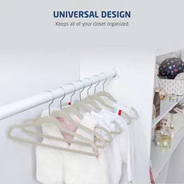 Zober Velvet Kids Hangers for Closet - Pack of 50 Non Slip Childrens Hangers for Shirts, Pants & Dresses w/Swivel Hook - Durable Kids Clothes Hanger w/Notches - Small Hangers - Ivory