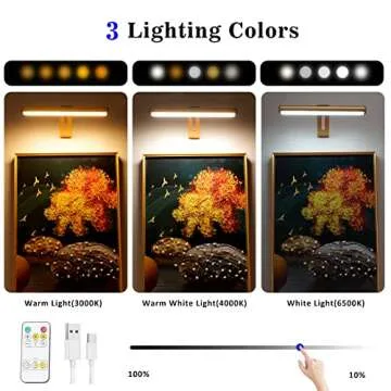 Show more Illuminate your art and surroundings with the ultimate lighting solution — the Rechargeable Picture Light. This remarkable product boasts 300 Lumens through its 16 LEDs, providing a radiant ambiance suitable for any setting. Choose from three lighting modes — warm light (3000K), warm white light (4000K), and bright white light (6500K) — to create the perfect atmosphere for your artwork, photos, or decor. With a 4000mAh rechargeable battery and a generous 39-inch Type-C charging cable, enjoy an impressive up to 12 hours of lighting after just 2 hours of charging, using any USB-enabled source.