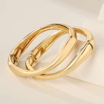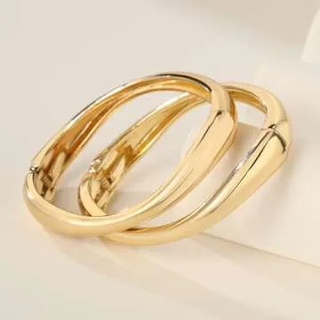 zocare Gold Bangles Bracelets for Women Chunky Gold Cuff Bracelet Set 2PCS Trendy Bracelet for Women Irregular Cuff Hinged Wide 14K Gold Plated Bracelet