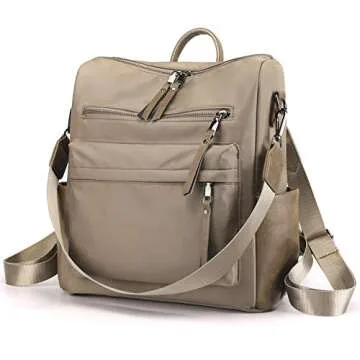 Show moreIntroducing the ZOCILOR Women's Fashion Backpack Purse, a versatile and stylish accessory designed for the on-the-go woman. Crafted from premium PU leather, this multipurpose bag serves as a chic handbag, a practical work bag, and a trendy travel companion. The rich khaki nylon coat gives it a sophisticated look while ensuring that it's easy to pair with any outfit. With a thoughtful blend of style and functionality, this bag is perfect for any occasion, making it an essential addition to your wardrobe.