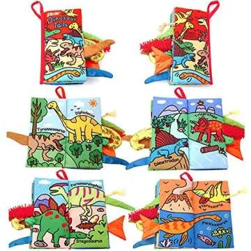 Zocita Baby Soft Animal Tails Activity Cloth Book with Crinkle Fabric, Dinosaur Tails
