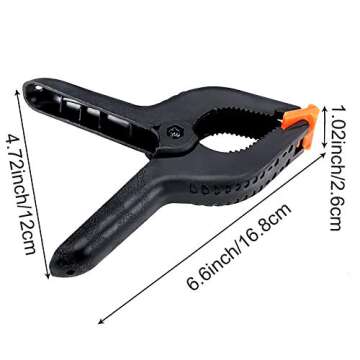 Show moreIntroducing the ZOENHOU 22 PCS 6 Inch Spring Clamp Set, the ultimate toolset designed for both professionals and DIY enthusiasts alike. Crafted from high-quality heavy-duty nylon plastic, these spring clamps are engineered for reliability and durability, ensuring they withstand the test of time and intense use. With a generous jaw opening of 3 inches, these clamps can accommodate thicker materials, making them ideal for a variety of projects. Whether you are woodworking, crafting, or setting up a photo backdrop, these clamps will provide the support you need.