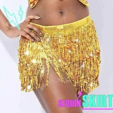 Zoestar Sequin Belly Dance Skirt Tassel Hip Scarf Multiplayer Dance Belt Party Performance Skirt Wrap for Women (Gold)