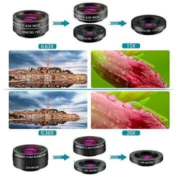 ZOETOUCH Cell Phone Camera Lens, 9 in 1 Camera Lens Kit Includes Fisheye Lens/ Telephoto Lens/ Wide Angle Lens/ Macro Lens/ CPL/ Kaleidoscope / Starburst Lens for iPhone, Samsung, Nexus, LG, Sony, etc